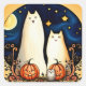 White Ghost Cats and Jack-o' Lanterns Square Sticker