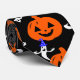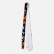 White ghost on head a hat with orange pumpkin tie