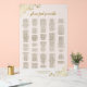 This beautiful seating chart features an elegant design with delicate golden curls and swirls in the corners on a partially transparent white background. The title is written in fancy script calligraphy and reads "please find your table." There is room for up to 300 names in alphabetical order with the names of the happy couple and wedding date at the bottom. Wonderful way to add style and class to your wedding reception while making it easy for your guests to find their seats.