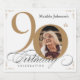 White Gold 90th Birthday Calligraphy Custom Photo Sparkling Wine Label