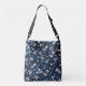 White & Gold abstract flowers on Simmery Blue Silk Crossbody Bag