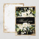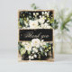 Rustic yet elegant white and green botanical floral sprays with “Thank you” script in the centre. Trimmed in faux gold glitter to set the tone for romantic elegance. Gold splashes finish off this pretty wedding invitation. Beautiful classic black background for any season.