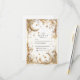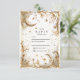 A luminous celestial wedding design glowing in soft white and metallic gold. This invitation features ornate swirling filigree, crescent moons, scattered stars, and shimmering celestial accents that create an ethereal, dream-filled atmosphere. The refined Art Nouveau frame adds a luxurious vintage touch, making it ideal for couples who want a romantic, moonlit, and enchanting celebration aesthetic.