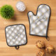 White Gold Diamond Tufted Custom Name Personalised Oven Mitt & Pot Holder Set