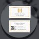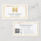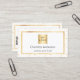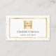 A chic white background and a faux gold frame and gold splashes. Personalise and add your business logo, name and text on front.