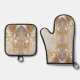 Beautiful White Gold Floral Oven Mitt & Pot Holder Set