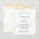 A modern, elegant wedding invitation. White background decorated with faux gold glitter sparkles. Personalise and add your names and wedding details. Black coloured letters.