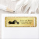 Passionate bikers will love these gold glitter return address labels that feature a motorcycle in the design. A black silhouette of a motorcycle is included next to the name and address. The inside gold pattern is a shiny metallic pattern. The outer edge is a glitter pattern. All patterns are photographs and not actual embellishments. This makes them quite easy to use and store. Perfect for every day use or for special occasions such as a wedding, anniversary or 50th birthday.