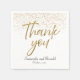 Simple, elegant wedding napkins featuring the words "Thank you" in faux gold glitter with gold glitter sprinkles in the background.