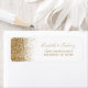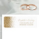 The left-hand edge of this elegant modern wedding return address label features a gold faux glitter design. The customisable text combines gold-coloured handwriting, copperplate and italic fonts on a white background.