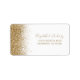 The left-hand edge of this elegant modern wedding RSVP address label features a gold faux glitter design. The customisable text combines gold-coloured handwriting, copperplate and italic fonts on a white background.