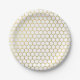 White & Gold Hexagon Geometric Pattern Paper Plate