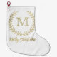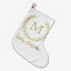 White & Gold Leaf Monogram Merry Christmas Large Christmas Stocking
