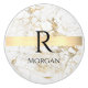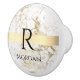 White/Gold Marble, Gold Bar, Black Name & Monogram Ceramic Knob