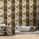 Opulent white marble with intricate gold veining paired with warm wood and sleek black slats-luxury acoustic panel wallpaper elevating bathrooms, dressing rooms, hotel lobbies, or high-end living spaces. Elegant peel-and-stick craftsmanship, flawless installation renters.