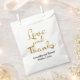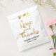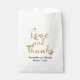 A simple wedding favour bag featuring the words "Love and Thanks" in faux gold foil.