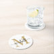 White Gold Modern Monogram Name Elegant Script Round Paper Coaster