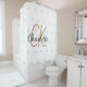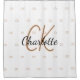 An elegant white background, golden and black text. Personalise and add your name and monogram initials. The name is written with a hand lettered style script. Your initials as a background pattern