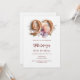 A modern, stylish and glamourous invitation for a 90th birthday. White background, decorated with a peach and purple watercolored flower. The name is written with a modern hand lettered style script. Personalise and add your party details. Number 90 is written with a balloon style font, script.