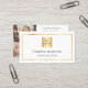 A chic white background and a faux gold frame. Personalise and add your business logo, name and text on front.