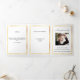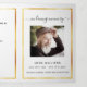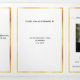 An elegant tri-fold program. A white background, a faux gold frame and space for your photo. Personalise and add name, dates and your text.