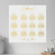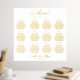This real gold foil poster can be framed to make the perfect elegant and chic seating chart for wedding, Barmitzvah, Baptism, Graduation or other event as desired. 12 Tables, 8 names per table, can be edited and the background colour can be changed. Real gold foil (or you can switch to silver to suit your event theme).
