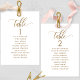 Help your guests find their table with this elegant modern seating plan cards with guests names. Double sided cards so guests can look from both, front or back for their names. Clear space all around giving you the liberty to use clips or punch hole for hanging displays, or use table holder. White background and text in gold. Modern hand written calligraphy details. Part of our "Elegant Calligraphy Wedding Stationery" collection. Visit the entire collection at: https://www.zazzle.com/collections/elegant_calligraphy_minimalist_wedding_stationery-119497981924462546