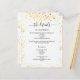 A modern, elegant wedding details/program/timeline. A white background decorated with faux gold glitter, sparkles. Personalise and add your names and wedding details. Black coloured letters.