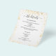 A modern, elegant wedding details/program/timeline. A white background decorated with faux gold glitter, sparkles. Personalise and add your names and wedding details. Black coloured letters.