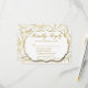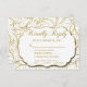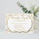 An elegant RSVP card featuring white background with gold swirls and meal options on the bottom.