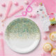 White Gold & Teal Blue Glitter Modern Coastal Glam Paper Plate