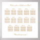 An elegant seating chart poster featuring stylish text in a golden shade of beige on traditional classic white. Please personalise the names of the couple and the names of the guests along with any of the other text that you may wish to personalise.
