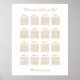 An elegant seating chart poster featuring stylish text in a golden shade of beige on traditional classic white. Please personalise the names of the couple and the names of the guests along with any of the other text that you may wish to personalise.