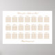 An elegant seating chart poster featuring stylish text in a golden shade of beige on traditional classic white. Please personalise the names of the couple and the names of the guests along with any of the other text that you may wish to personalise.