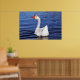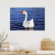 white goose swimming on blue water photo poster