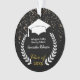 Graduation ornament gift for that special high school or college grad with custom front and back text. Features image of a white grad cap and laurel wreath printed on sturdy acrylic. Accented with faux gold confetti. Red, blue and other cap colours also available in this same design