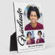 Be proud, rejoice and showcase this milestone of your favourite grad. Create this simple, modern, minimal personalised 3 photo easel back plaque for a keepsake you’ll always treasure. Bold, graphic, black handwritten script calligraphy, sans serif typography and 3 photos of your choice in an arch shape overlay a minimal white background. Customise the text with your graduate’s name, school name, class year and add your photos. Matching invites, thank you cards, address labels, hand signs yard signs, banners and other graduation goodies are also available in this trendy and minimalist collection. It's the perfect gift for grandparents, as well as for yourselves or your grad! And guaranteed to preserve cherished memories of their special occasion.