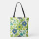 White Green and Blue Floral Tote Bag