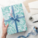 Elegant white floral damasks seamless pattern on a mint-green background that is changeable.