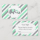 White, Green & Grey Stripe Elephants Diaper Raffle Enclosure Card