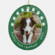 Double-sided Christmas ornament to celebrate your first Christmas with your new pet! Add one photo to each side inside a green frame decorated with tiny white paw prints, your pet's name, and the year.