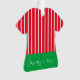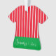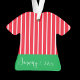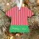 Cute Red and white stripes on Green shirt with birthdate ornament for baby's first Christmas. Name on one side, date on other.