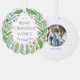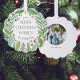 Clean white makes an elegant backdrop for intertwined boughs of leafy branches that encircle a message of "merry Christmas wishes" accented by faux foil berries and stars. Personalise this card with your name, the year, a custom message and your photo on the reverse.