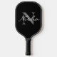 White Grey Monogram Name Pickleball Paddle. Monogrammed, elegant, simple and modern design on black background to personalise with your initial and name.