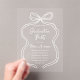 Keep it classy and fun with this stylish acrylic graduation invitation! Designed with a delicate white hand-drawn bow and whimsical script typography, it's a modern and elegant way to invite loved ones to your big celebration.