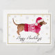 Send smiles this season with this adorable gold foil holiday card from Porch and Gable Design! Featuring a watercolor dachshund all dressed up in a cosy red sweater and Santa hat, this festive design is perfect for anyone who loves their wiener dog or simply appreciates a bit of holiday cheer. The card showcases an elegant gold foil inner frame, adding a touch of shimmer and sophistication.