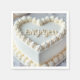 A heart-shaped cake with the word "ENGAGED" written on top is elegantly decorated with swirls of white frosting
