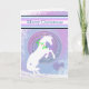 A pink and lavender background design with the white silhouette of a rearing horse wearing a holly wreath and a magical swirling Christmas moon. Click customise to add your personal Holiday Greeting, message and signature. The perfect Holiday card for your horse lover!