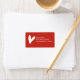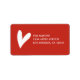 This address label features a white heart with your name and address to the right. The red background colour can be changed using the customisation tool.