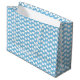 A gift bag with white hearts on a light blue background. You can choose the background colour of your preference.